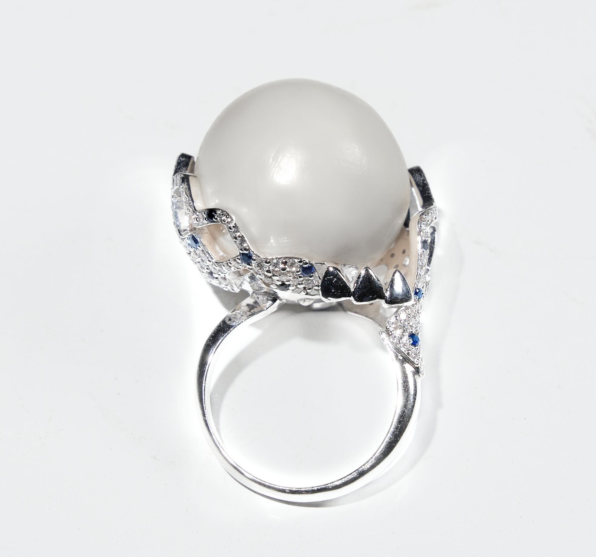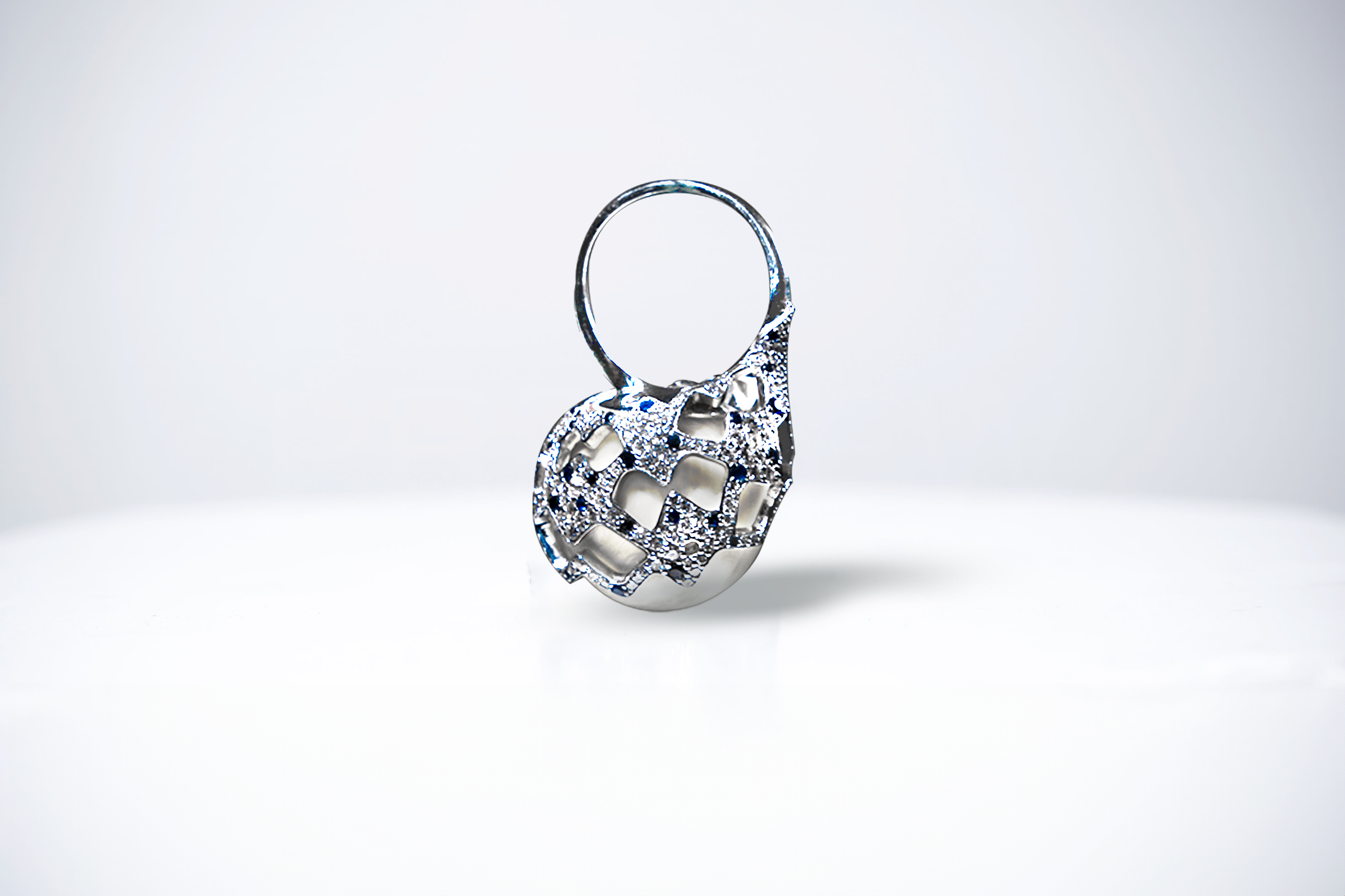 La Bague Anansi, réalisée en or blanc 18 carats et Saphirs bleus, est une création exquise qui reflète l’élégance et la force.