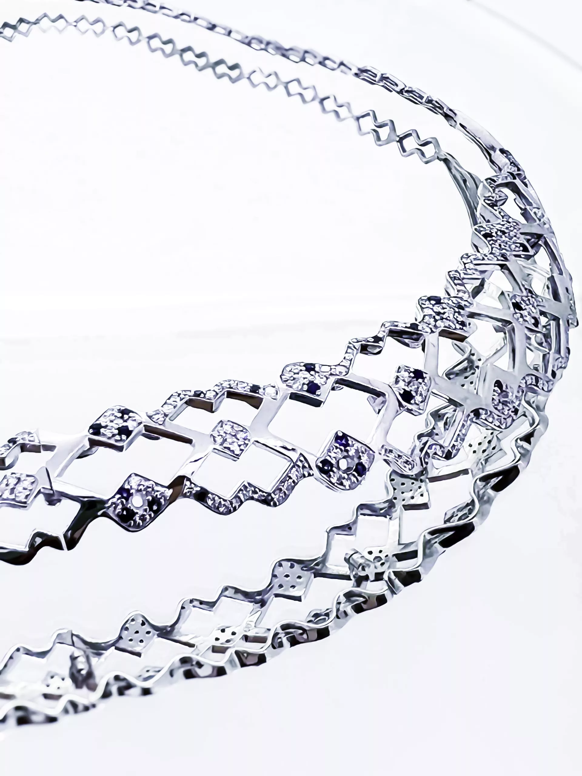 Le Collier Anansi, en or blanc 18 carats, est une pièce maîtresse qui allie tradition et modernité. Inspiré par la légende de l’araignée Anansi, ce collier symbolise la force et la sagesse.